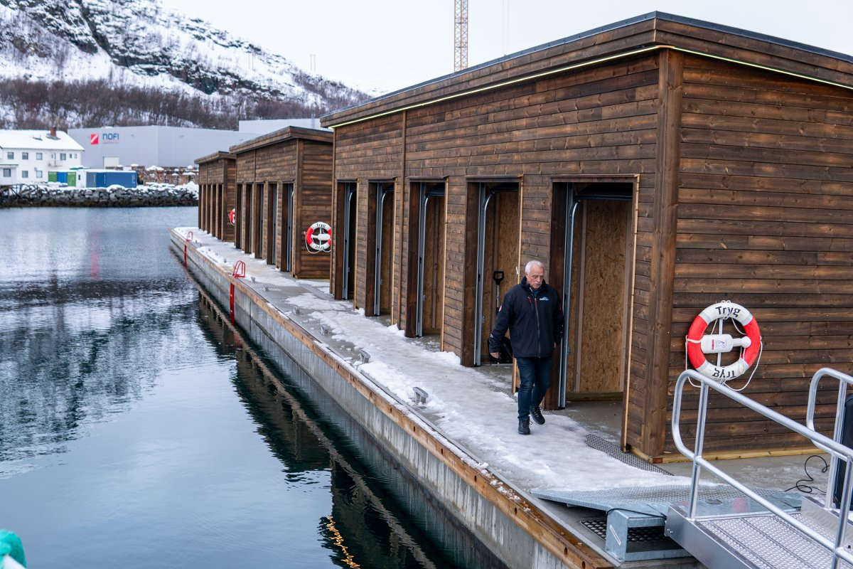 Det nye anlegget gir ikke bare økte kaiplasser, det er også flytende serviceboder som gjør det enkelt for fiskerne å lagre utstyret sitt i nærheten av båten.